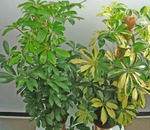 Я каждый год черенкую шифлеру в марте-апреле. Черенки окореняю в воде.Бывает, правда, не все дают корешки. Лучше, если черенок помоложе. Маточник подкормить, подсыпать верхний плодородный слой земли. И он снова обрастает молодыми отпрысками. Жалко его выбросить! Молодые растеньица раздариваю. Себе остается обновленный пышный кустик.