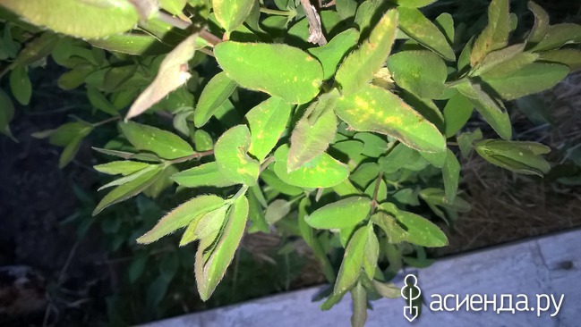 На фото почти не видно, кроме этих желтых пятнышек по листу еще бурая кайма по краю листиков...