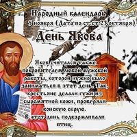 СЕГОДНЯ 5 НОЯБРЯ ДЕНЬ ЯКОВА ЯКОВ ГУЖНИК Этот день в 2021 году - https://www.asienda.ru/post/59146/ В 2022 году - https://www.asienda.ru/post/60491/ В 2023 году - https://www.asienda.ru/post/61855/ В 2024 году - https://www.asienda.ru/post/62716/ Больше информации об этом днев разделе "Праздник каждый день" 2017 - https://www.asienda.ru/post/47169/ ПРИМЕТЫ НА 5 НОЯБРЯ: - Если в Яков день выпал снег, то к Матрене (22 ноября) зима войдет в свои права... Читать далее»