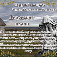 СЕГОДНЯ 7 НОЯБРЯ ДЕДОВСКИЕ ПЛАЧИ Этот день в 2021 году - https://www.asienda.ru/post/59149/ В 2022 году - https://www.asienda.ru/post/60496/ В 2023 году - https://www.asienda.ru/post/61862/ В 2024 году - https://www.asienda.ru/post/62722/ Больше информации об этом днев разделе "Праздник каждый день" 2017 - https://www.asienda.ru/post/47186/ ПРИМЕТЫ НА 7 НОЯБРЯ: - Если 7 ноября стоит сухая погода, то зима будет морозной и с метелями... Читать далее»