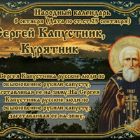 СЕГОДНЯ 8 ОКТЯБРЯ СЕРГЕЙ КАПУСТНИК СЕРГЕЙ КУРЯТНИК Этот день в 2021 году - https://www.asienda.ru/post/59077/ В 2022 году - https://www.asienda.ru/post/60397/ В 2023 году - https://www.asienda.ru/post/61772/ В 2024 году - https://www.asienda.ru/post/62650/ Больше информации об этом днев разделе "Праздник каждый день" 2017 - https://www.asienda.ru/post/46842/ ПРИМЕТЫ НА 8 ОКТЯБРЯ: - Первый снег выпал 8 октября – зима наступитна Михайлов день (21 ноября)... Читать далее»