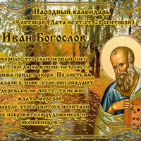 СЕГОДНЯ 9 ОКТЯБРЯ ИОАНН БОГОСЛОВ ИОАНН ПУТНИК Этот день в 2021 году - https://www.asienda.ru/post/59079/ В 2022 году - https://www.asienda.ru/post/60398/ В 2023 году - https://www.asienda.ru/post/61775/ В 2024 году - https://www.asienda.ru/post/62653/ Больше информации об этом днев разделе "Праздник каждый день" 2017 - https://www.asienda.ru/post/46851/ ПРИМЕТЫ НА 9 ОКТЯБРЯ: - Если в этот день выпал снег, то зима начнется с Михайлова дня (21 ноября)... Читать далее»