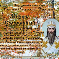 СЕГОДНЯ 13 ОКТЯБРЯ МИХАИЛ СОЛОМЕННЫЙ ГРИГОРИЙ СОЛОМЕННЫЙ Этот день в 2021 году - https://www.asienda.ru/post/59086/ В 2022 году - https://www.asienda.ru/post/60407/ В 2023 году - https://www.asienda.ru/post/61787/ В 2024 году - https://www.asienda.ru/post/62662/ Больше информации об этом днев разделе "Праздник каждый день" 2017 - https://www.asienda.ru/post/46900/ ПРИМЕТЫ НА 13 ОКТЯБРЯ: - Если первыйснег выпалэтот день, то зима ещё не скоро наступит... Читать далее»