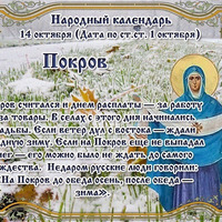 СЕГОДНЯ 14 ОКТЯБРЯ ПОКРОВ ПРЕСВЯТОЙ БОГОРОДИЦЫ Этот день в 2021 году - https://www.asienda.ru/post/59089/ В 2022 году - https://www.asienda.ru/post/60410/ В 2023 году - https://www.asienda.ru/post/61789/ В 2024 году - https://www.asienda.ru/post/62663/ Больше информации об этом днев разделе "Праздник каждый день" 2017 - https://www.asienda.ru/post/46912/ ПРИМЕТЫ НА 14 ОКТЯБРЯ: - Какой Покров – такая и зима будет... Читать далее»