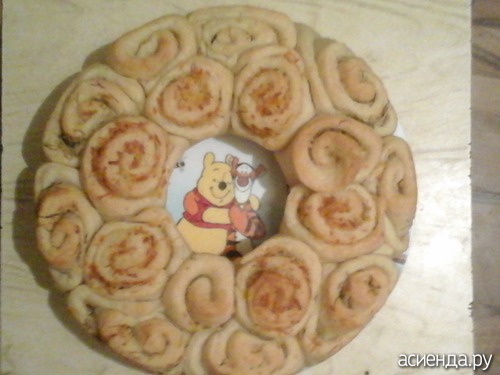 Юльчик обновленная вернулась Мужа жду к 8,30, так что пока не знаю как у него успехи. Вроде их и не ожидается, они же не на соревнования ездили, а на тренировку. Испекла я к его приезду Один "обезьяний хлеб". Намудрила чуток, надеюсь на вкусе это не сильно отразится