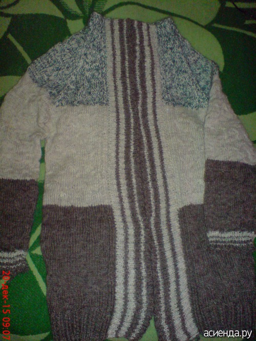 так получилось, что моя запись раньше пришла... Теперь про кофту : она не совсем готова, ещё молнию сегодня вставлю. Но могу и так показать... Предупреждаю сразу: она не на выход, а просто на зиму, поддеть под дублёнку... |