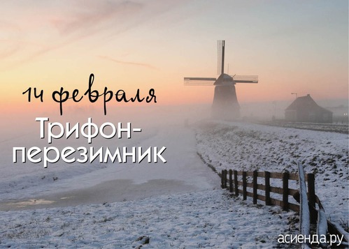 Народный календарь 14 февраля — Трифон-перезимник. В этот день следовало заговаривать мышей. Существовал такой, к примеру, ритуал: небольшой камень (примерно с кулак размером) клали на старую тарелку и ставили там, где в доме водятся мыши. Над тарелкой с камнем следовало несколько раз пошептать: «Грызово племя, вот тебе камень — грызи, а мое добро не тронь!» — а затем, пятясь назад, удалиться. Если на Трифона небо звездное, а погода стоит холодная — весна придет поздно и будет дождливой. Но вообще-то на звезды в этот день смотреть нежелательно, как и на «большую воду» — реку или озеро: считалось, что это может вызвать «немочь» — упадок сил, депрессию. |