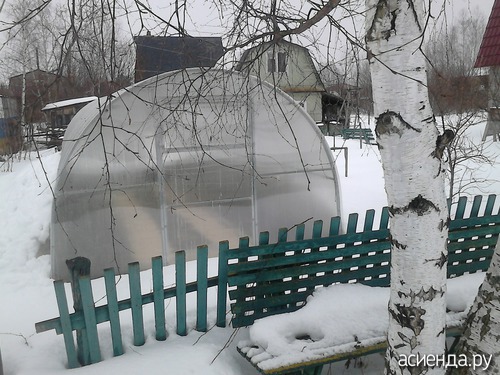 У меня молодёжь сегодня съездили в сад! Доехали до сторожки, дошли до участка, но на участок не заходили. Снега - выше, чем по-колено. Фото нашей теплицы и нашей улицы: