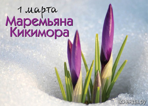 1 марта — Маремьяна Кикимора. Если день стоит теплый, ясный — скоро опять похолодает. Встарь говорили: «Если с первых дней весна разгульна, незастенчива — обманет, верить нечего». Но весны ждали, ее приветствовали и торопили. На Маремьяну принято было встречать восход, чествуя таким образом Ярилу — языческого бога Солнца. Ребятишек в этот день отправляли торить тропинки в снегу — этот нехитрый ритуал должен был даровать им счастливую жизнь. Еще отмечен первый день весны многочисленными защитными ритуалами: из дома и со двора «гнали кикимору», для чего все помещения окуривали целебными травами, окропляли святой водой; читали заговоры и вешали над входом защитные талисманы и обереги. «Откупаются» от бед, хворей и прочих напастей, переводя их на мелкие монеты, которые бросают на перекрестке или возле кладбища (поэтому не следует ничего поднимать с земли — чтобы не навлечь на себя чужие несчастья). |
