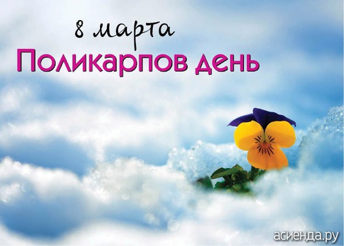 8 марта — Поликарп. В этот день, ставший в наше время женским праздником, незамужние девушки на Руси прибирали свои платья. «Убирай, девка, сундуки, закрывай наряды», — говорили в народе. Ведь если свадьбу не сыграли до масленой, то дальше ждали уже конца весны. С Поликарпа приходят возвратные холода, которые могут продлиться до середины месяца. Бытовала примета: если соломина, что на поверхности снега лежала, провалилась, — через месяц и весь снег сойдет. |