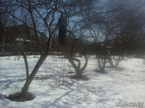 В городе уже настоящая весна, а вот на даче еще снега.