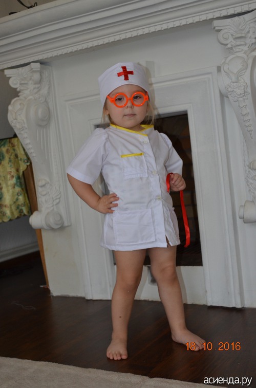 Эх!!! лечим всё. Это я ей сегодня костюм сшила,она давно просила халатик, вот ...сподобилась.