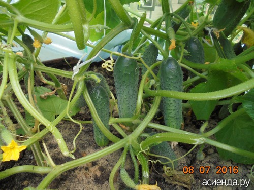 Огурцы "Кураж". 2 года сажаем, лучше ничего не было. В теплице были с мая по сентябрь на 3 плетях постоянно, и в бочках: |