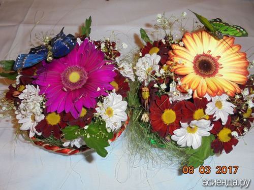 Я посадила 23 сорта набухших семян томатов. Хочу вам показать подарки сделанные для нас руками моей молодёжи... Корзиночки сплела Ксюша. В них флористическая губка и живые цветы. Только бабочки не самодельные.