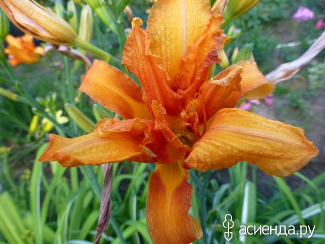 «Лилейник вариегатный с. Квансо цветок оранжево-кирпичный махровый - Hemerocallis fulva var Kwanso f. variegated»