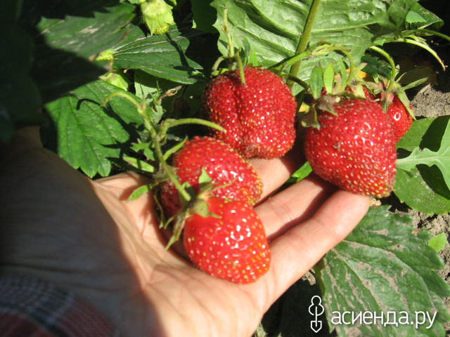 Ягоды первые слегка ребристые, сдвоенные, последующие вытянутой формы тупоконечные, ярко-красные. Вкус отличный, с ароматом земляники. Урожайность высокая. На одном кусту образуется много цветоносов, каждый из которых несёт на себе по 5 ягод. Сорт транспортабельный. Используется как на переработку, так и употребляется в свежем виде.