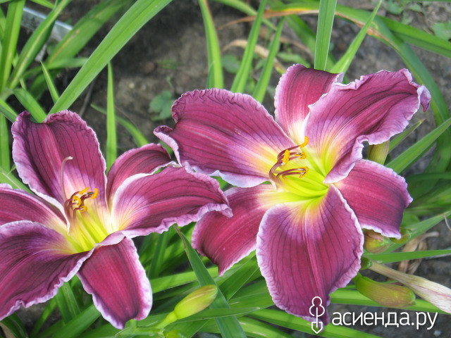 Бутоны насыщенно-пурпурного цвета с лавандовым горлом. Создают впечатление свечения внутри цветка. Отличаются розовыми лучиками в середине лепестка, светло-сиреневой бахромчатой каймой по краю. Диаметр соцветия около 12 см. Высота растений 50 см.