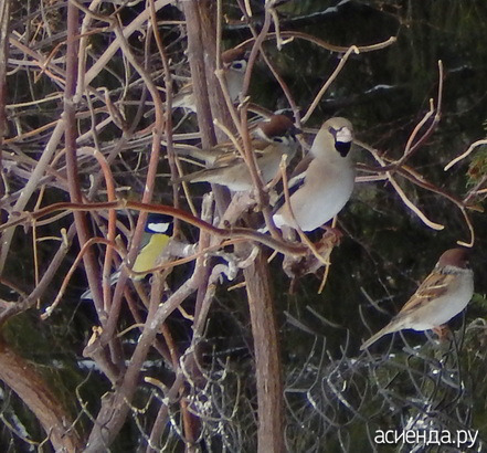 Уже не первую зиму дубоносы остаются тут. Часто прилетают на кормушку.