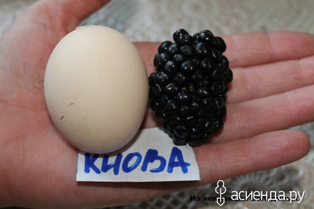 Один из шедевров мировой селекции- самый коупноплодный сорт ежевики КИОВА. На родине(в США) проводят конкурсы на самую крупную его ягоду. У нас пока рекорд=32грамма.Если увидите, что шипы небольшие- это не КИОВА.