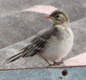 Слеток трясогузки, совсем маленький, но хвостиком уже качает. Мама всегда рядом