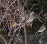 Уже не первую зиму дубоносы остаются тут. Часто прилетают на кормушку.