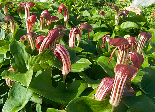 Аризарум представляет собой не слишком высокое почвопокровное растение, наделенное чем-то напоминающими луковые перышки сочными стреловидными листочками. С наступлением весны эти листики образовывают роскошный сплошной ковер нежнейшего зеленого цвета, при этом высота данного ковра может достигать десяти сантиметров. А стебельки аризарума заканчиваются клубнями, которые могут иметь как цилиндрическую, так и яйцевидную форму.Что касается соцветий аризарума, то они имеют довольно странную форму – каждое соцветие складывается в миниатюрный початок, имеющий некоторое сходство с каллами. Сверху такие початочки покрыты схожими с чуть изогнутыми бокальчиками трубчатыми покрывальцами, а заканчиваются они напоминающими мышиные хвосты длинными выростами. Зато в период цветения от аризарума невозможно оторвать взгляд!