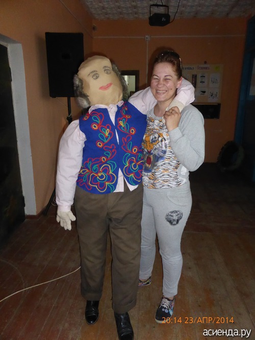 Вот такая Маруся в прошлом году поселилась на моих клубничных грядках. Было наказано ей отпугивать птичек, а Марусю все птицы не бояться и полюбили. Только аист, который живёт с нами по соседству, пытался отобрать у неё шляпу. Несколько раз видела как он пытался её стащить. Приходилось бежать и Марусю отбивать.