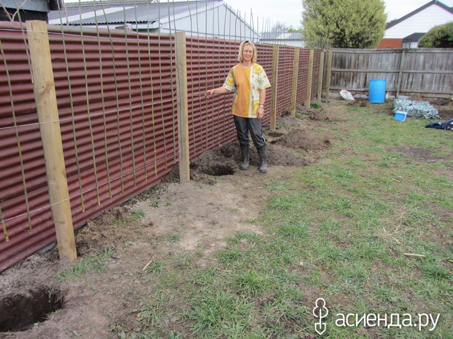 Сзади высоких грядок - забор, на котором распяты мои деревья на шпалере.