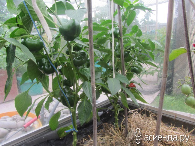 Там же растут перцы. Уже вымахали на полметра и начали краснеть. Сначала их интенсивно ела тля, я мыла перцы каждый день, но потом я посадила фенугрек и кажется запах им не понравился. Сейчас тли нет.