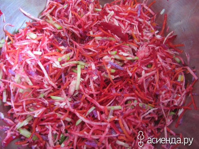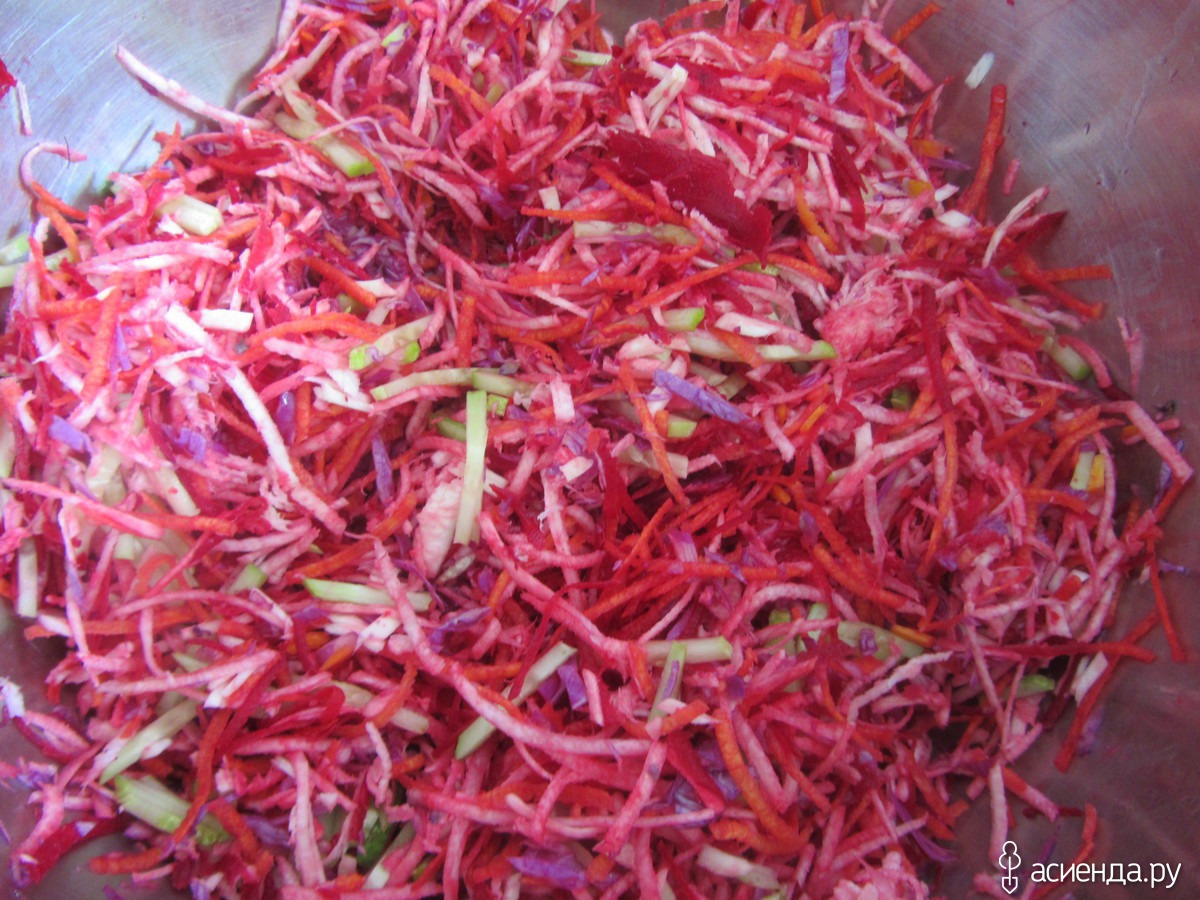 А вот моя любимая летняя еда – тертые: свекла, красная капуста, пастернак, морковка, огурец и перец плюс немного соли и масла. Мужу добавляю мясное. Недавно поняла, что он меня 16 лет нагло обманывал, говоря, что не любит мясо. Оказалось, что еще как любит. Вот и верь после этого мужчинам!