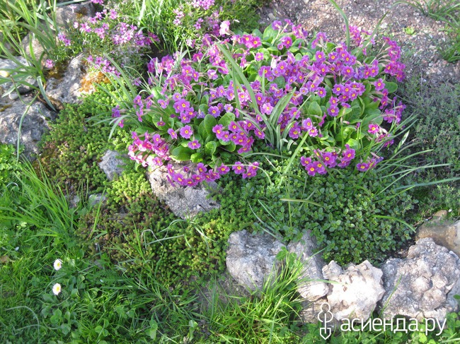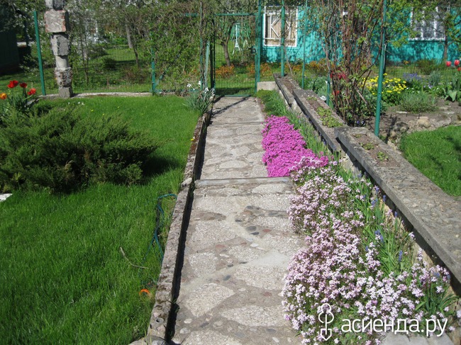 А здесь обриетта и шиловидный флокс среди камней на другой альпийской горке.