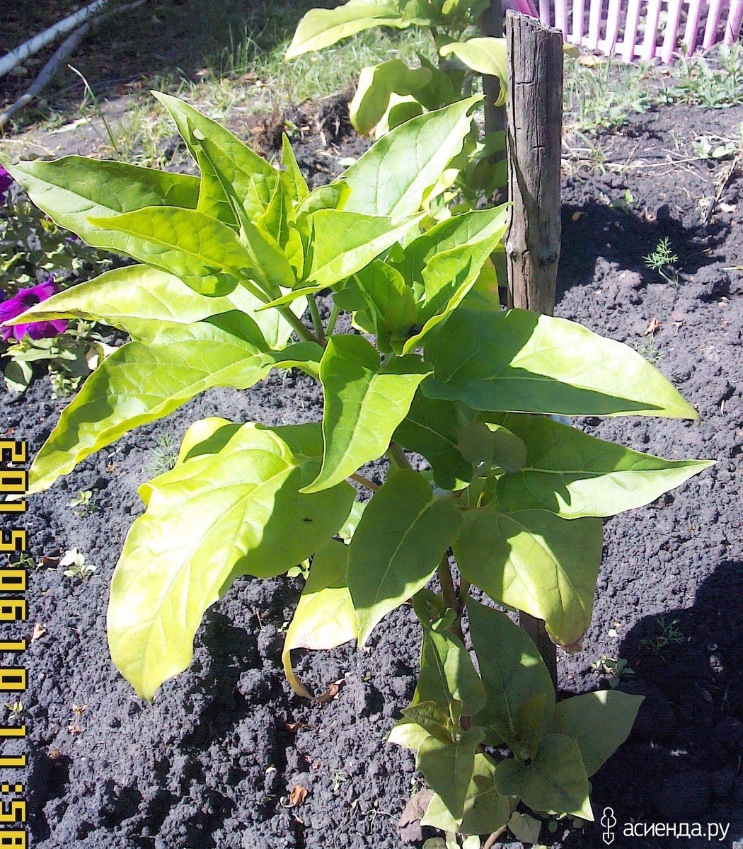 Это наша ночная красавица. Правильное ее название Мирабилис ялапа. Бутонов пока нет, ждем.