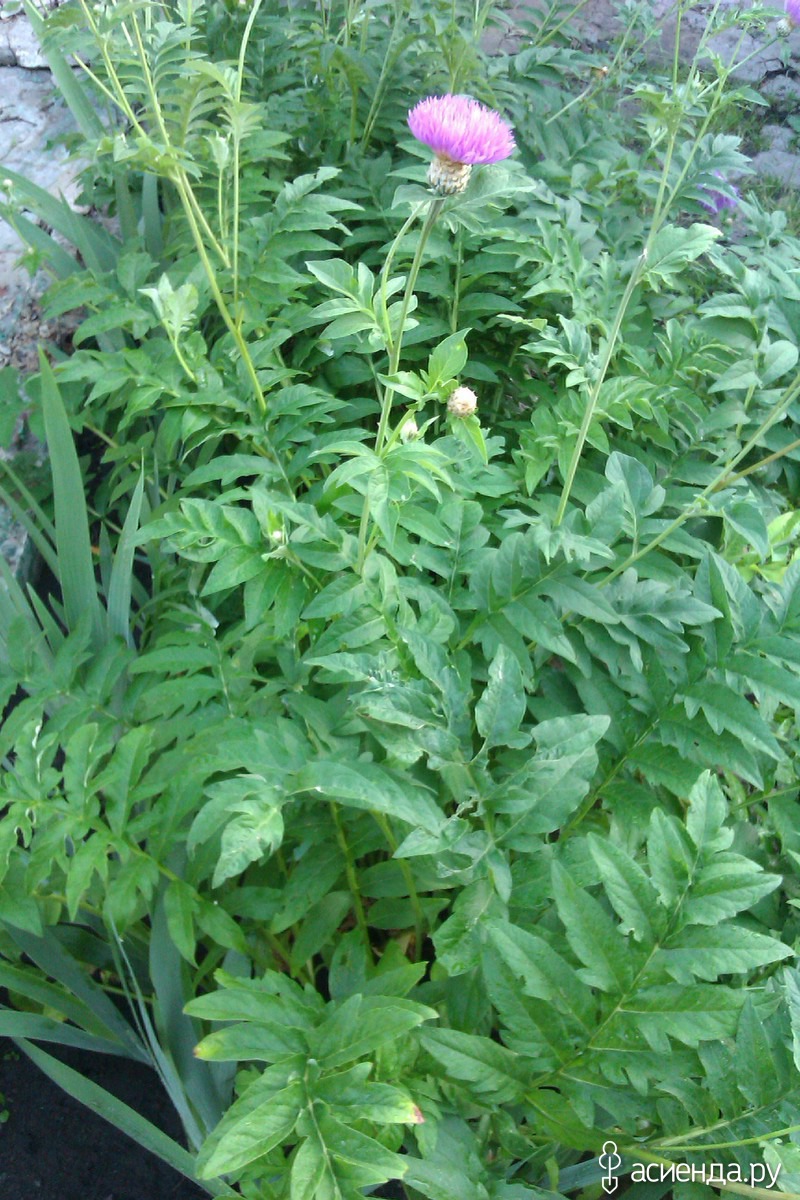 Написать комментарий- это василек многолетнимй, вид - не помню. Извела с трудом, но уж больно огромный, столько места занимал... Но красив и ботвой и цветочками.