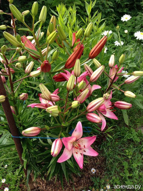 я насчитала на этой лилии 29 бутонов и часть их уже начала распускаться