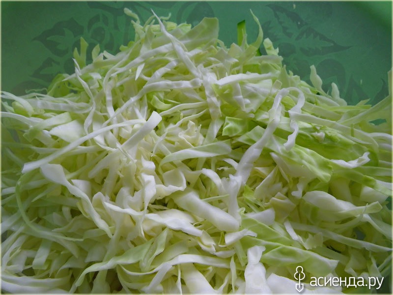 1. Капусту нашинковать вручную или при помощи специальной терки. Не советую шинковать капусту на комбайне, в этом случае она быстро дает сок и получается не достаточно хрустящей.