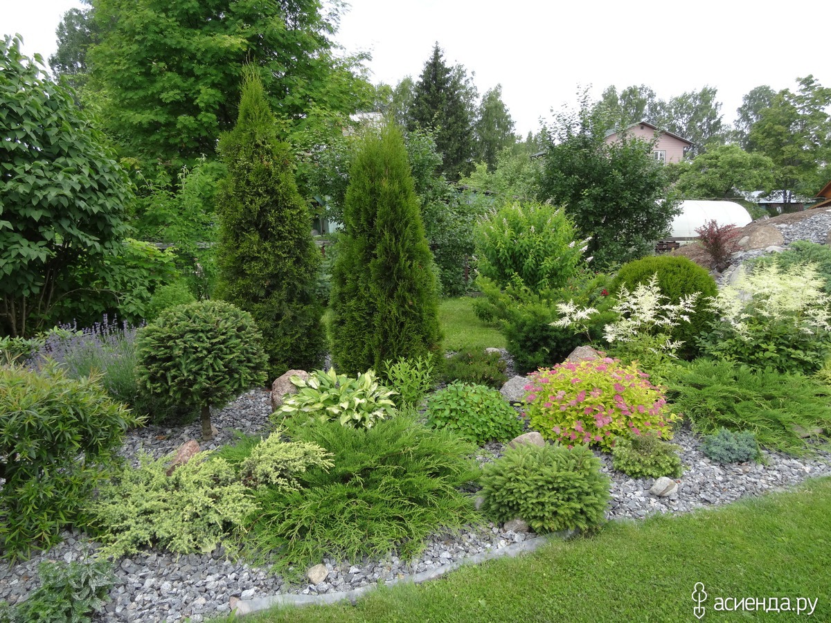 Слева видна моя стриженная ель. Она вполне декоративна и вписывается в мой рокарий.