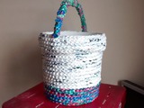 Доброе время суток, дорогие асиендочки. Не могла не показать свою новую работу из серии "Голь на выдумку хитра". Так получилось, что я живу сейчас отрезанная от цивилизации, а подарок сделать хочется. Моя любимая тётя сказала, что хочет иметь сладкую картошку, её колорады не едят. Я тут же приобрела две штучки. Но к тёте я доберусь ещё не скоро, а картошка начала расти. Нужно срочно посадить. Я огляделась вокруг, увидела банку из-под краски, в запасниках нашла клубочки резаных б/у п/этиленовых пакетов, связала цепочку. И клей "Момент" оказался под рукой. Приклеила цепочку на банку и у меня получился подарочный горшок. Осталось посадить картошку и отвезти тёте. Картошка будет расти в комнате до весны, а весной мы её начеренкуем и посидим в огород.
