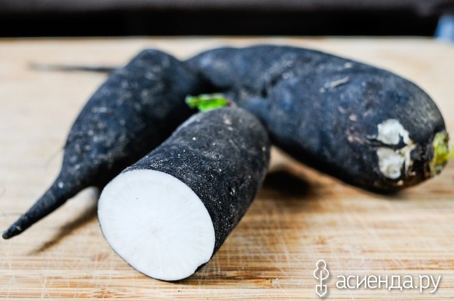 Редька цилиндр Эта редька традиционного черного цвета, но не типичной формы – она длинная, как морковка. Массой 170–210 г. Мякоть у них белая, нежная, хрустящая, слабоострого вкуса. Урожайность до 3,6 кг с 1 кв. м. Семена высевают весной. Созревает 62–73 дня.