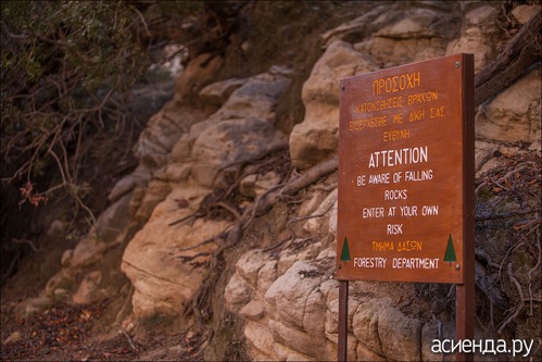 "Перед входом на тропу, ведущую по ущелью, стоит информационный щит, который предупреждает об опасности падающих камней. "Ха!" - подумал я, но оказалось, что это соврешенно неспроста. Хочу сразу сказать, что когда я уже достаточно продвинулся вглубь ущелья, как раз и случился такой небольшой обвал, но услышав какой-то грохот сверху, я моментально отскочил в сторону, а с десяток камней упали в пару метрах от меня. Будучи не особо суеверным, мною всё равно это было воспринято как "знак" и поэтому движение дальше я всё же прекратил."