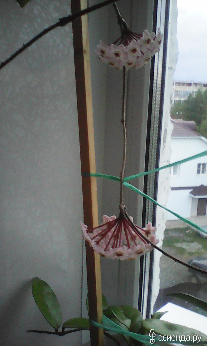 Первая ласточка - хойя прекрасная или красивая, на латыни - Hoya bella. Хойя бела, ещё одно название, родственница воскового плюща (хойи мясистой). Внешне они мало похожи, только по цветам понятно - родня. Листья у беллы без воскового покрытия, обычные травянистые. Цветы без запаха. Напротив, цветы воскового плюща ароматные, запах сильный, словно кто-то разлил флакон одеколона. Домашним не нравилось, пришлось отправить плющ в прихожую. Теперь все довольны.