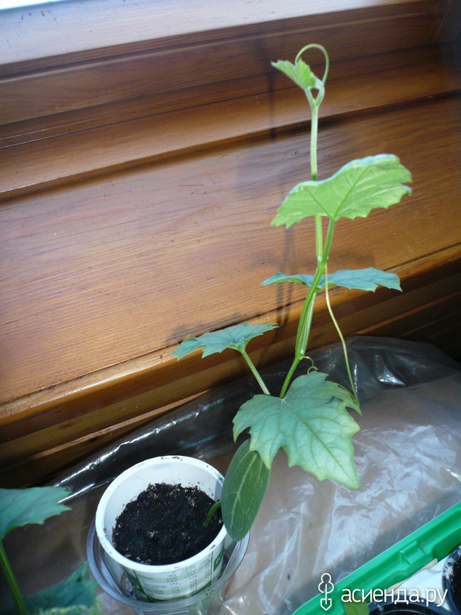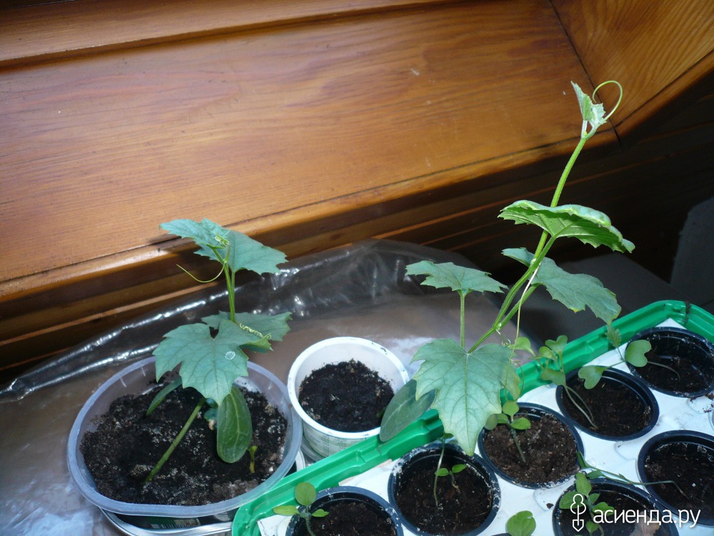 Хочу сказать, что прорастали семечки довольно долго и взошли не все. Растут у меня сейчас две растюхи. Я читала, что растюха эта не любит пересадку, поэтому посадила сразу в отдельные стаканчики. Растут, ждут тепла. Я тоже жду)