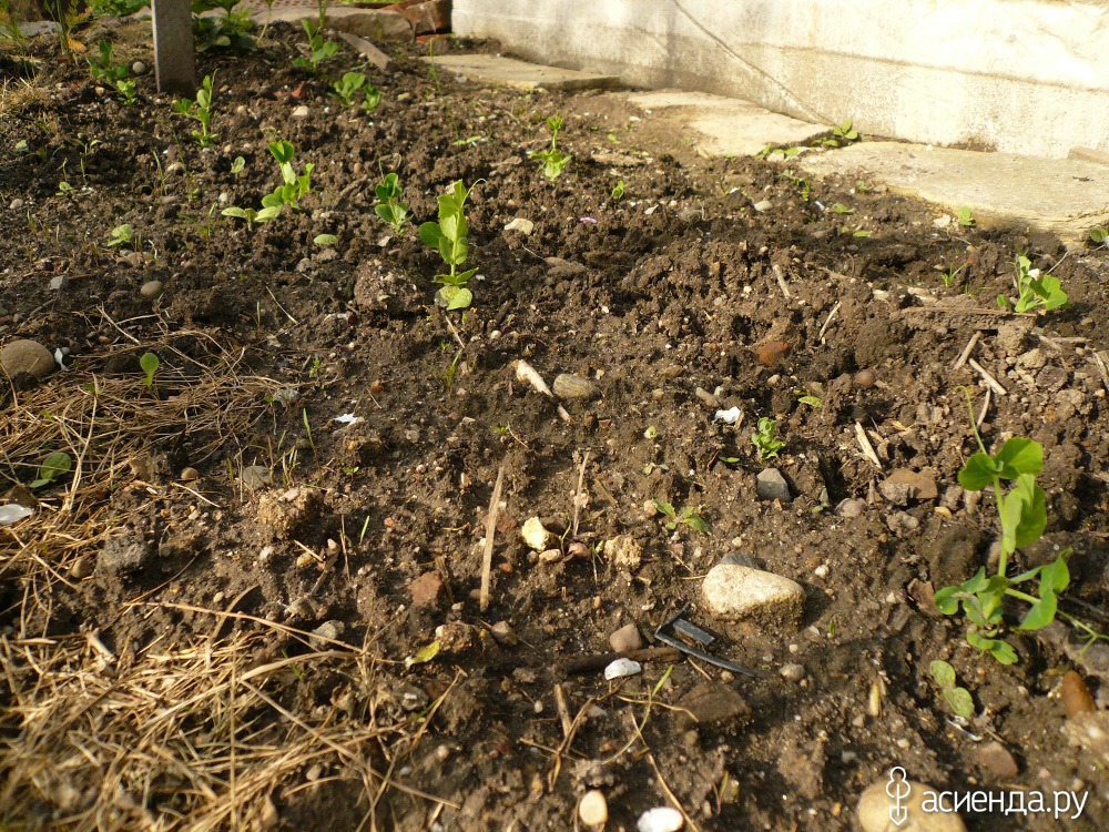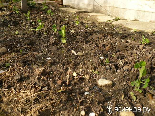 Взошел горох. Посадила в марте сухой. Вот сейчас всходит.