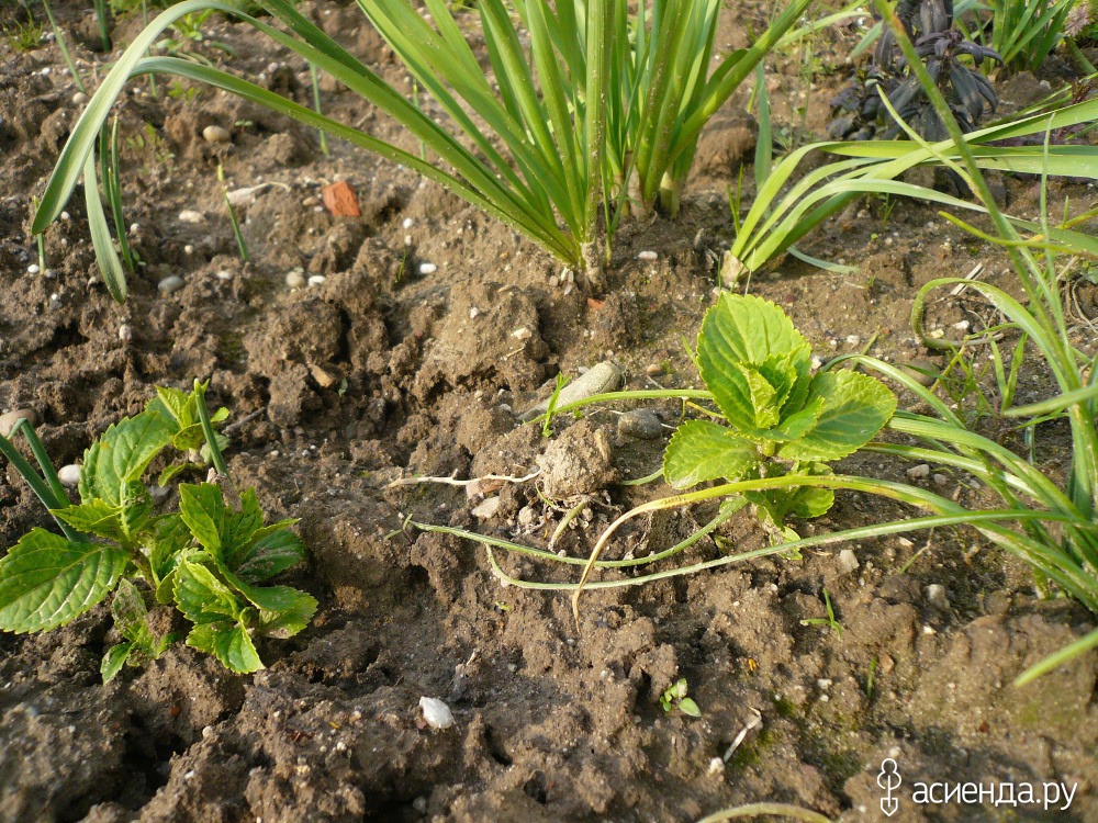Очень меня обрадовали вот эти росточки гортензии. Я уже не надеялась, что растюхи выживут. В прошлом году им досталось от стройки. Но растут ведь!