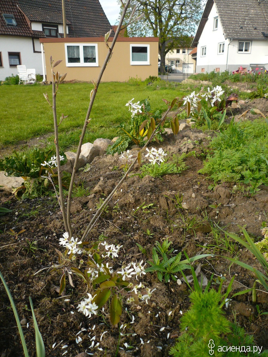 Зацвел молоденький кустик ирги, его этой осенью посадили. Тоже радость.