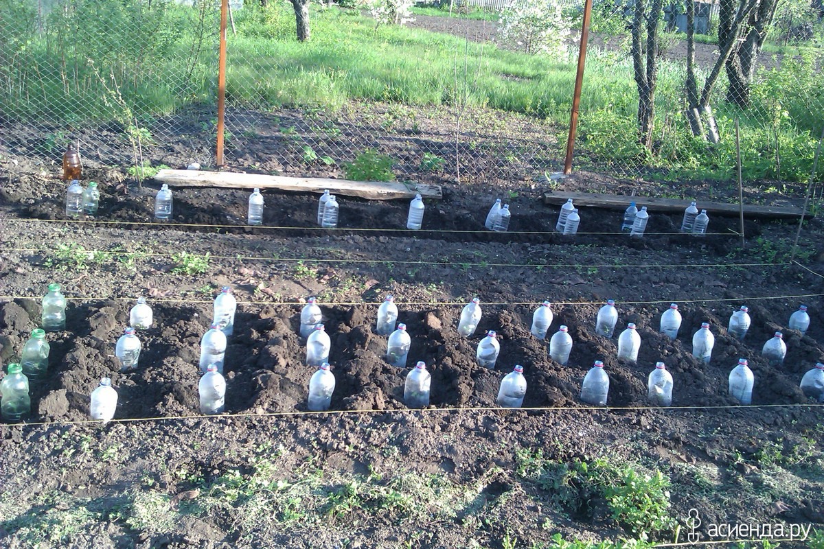 Теперь вопрос о капусте. А почему ты между ними такие гребни делаешь? Зачем бутылками прикрыла?