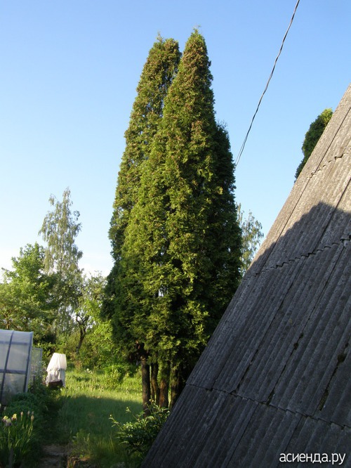 Все, поняла , о каком дереве спрашиваете!На фото с черными тюльпанами на заднем плане многоствольная древняя туя моего соседа, который на своем участке ничего не делает, все заросло...Ближе к нам есть еще две туи.Мне они безумно нравятся, хотя осенью засыпают хвоей мой цветник.Когда я впервые их увидела ( при покупке дачи), то влюбилась сразу!