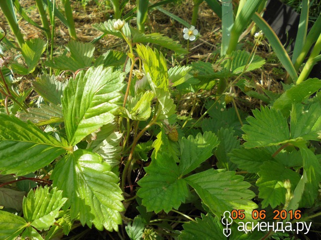 Почти всё было посажено во время майского отпуска, теперь ждём урожая. Ну и вот что там растёт:Земляника, выращенная в прошлом году из семян (впервые).