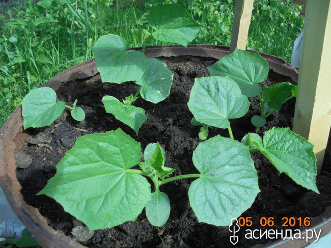 Огурцы в бочке. Взошли все, надо будет отсадить на грядку.