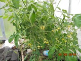 Теплицу я заселила 9 апреля. Насеяла всего подряд: разные салаты, укроп, петрушку - всё это давно едим. Редиска закончилась. Основные культуры посадила посреди всего этого.