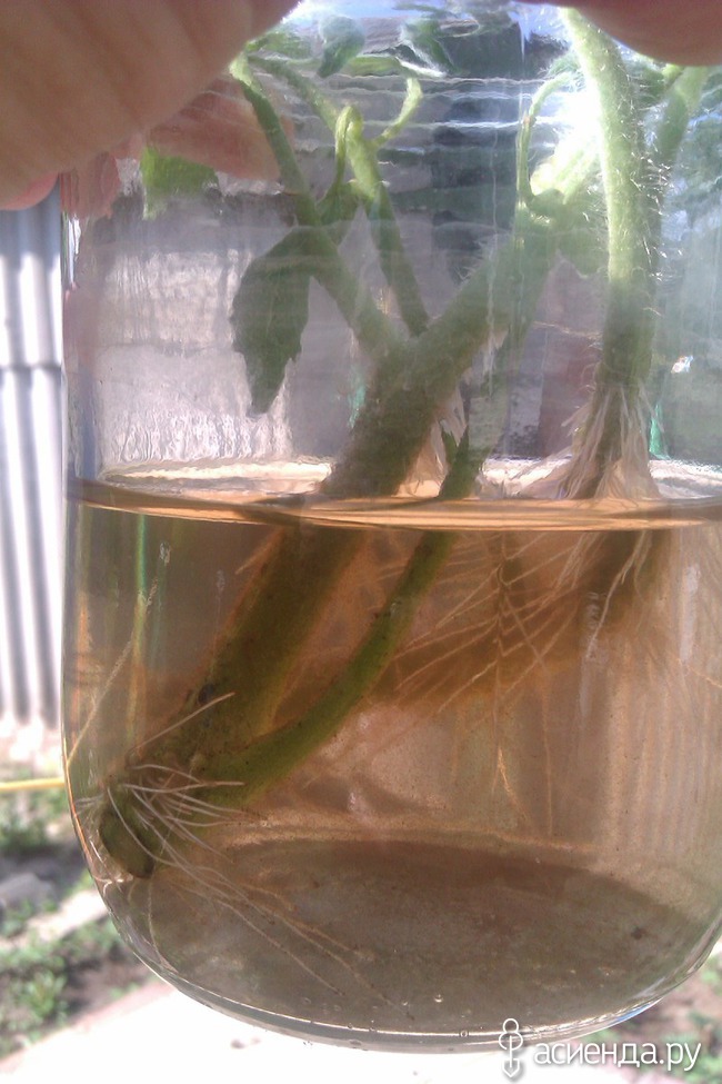 Несколько дней назад обрывала пасынки и лишние листья у помидор и так увлеклась стрижкой красавицы "Шахерезады", что хренакнула два пасынка с бутонами... жалко то как!. я быстренько в баночку с водой эпинчика накапала, поставила их туда, и все это оставила под кустиком "Шахерезады"... ну и в суете дел- благополучно забыла, потому как память то Девичья... а сегодня